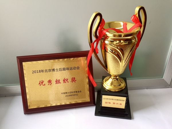 5月5日,我校博士后代表队在“2018年北京博士后趣味运动会”上获得“团体总分第六名”,并获得了运动会组委会颁发的“优秀组织奖”。